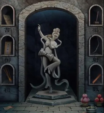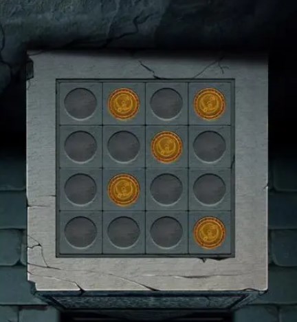 完成小游戏得到通关文牒,回到下方,按照下图顺序摆放身上的物品升上神像,点亮神像拿到阵法残页,第四章结束。