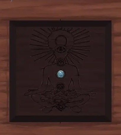 点击左边石像的鼓,可得知符号顺序,顺序对应墙上挂画的图案得知右边石像的密码如下,得到【石鼓】放到门的凹槽上,根据挂画下的穗子按照【右右左右左右右】开门。