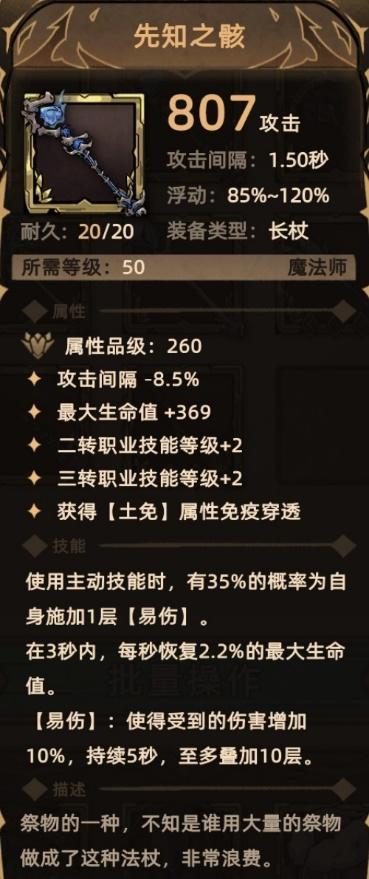 关键词:攻击间隔降低、生命、二转技能等级、三转技能等级、土免贯通、易伤debuff、生命恢复。