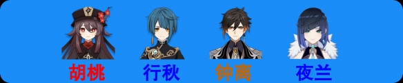 夜兰和行秋都有优秀的后台挂水功能,夜兰又能给胡桃提供增伤,双水共鸣提升生命值,进而提升胡桃与夜兰的伤害,行秋使用祭礼使队伍的充能不会有太大问题,钟离提供减抗以及护盾,胡桃进行站场输出。
