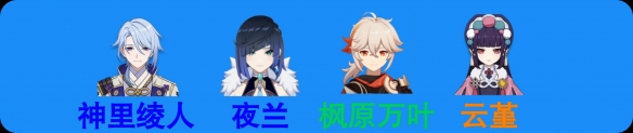 夜兰有优秀的脱手挂水机制,天赋又能为队友增伤,本身有能作为主C输出,使得配队多样化,这里仅列出几个常见配队以供参考。