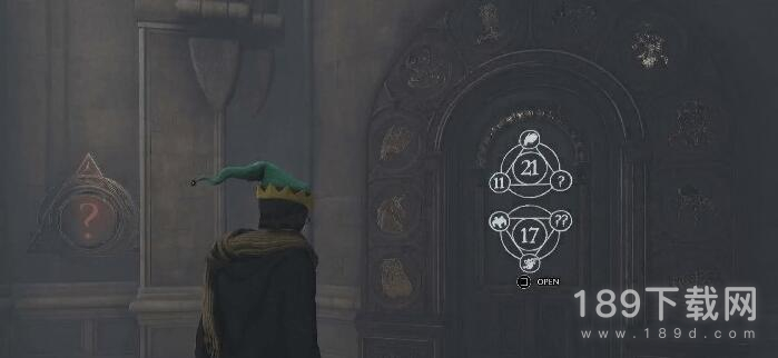 门的两侧各有一个骰子机关,将骰子与问号代表的数字一一对应,就可以解开谜题了。