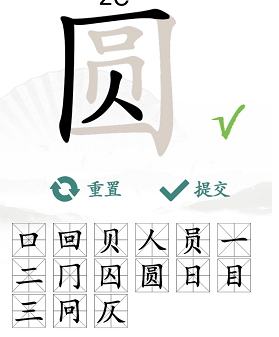 3、第一排我们把这浒进行拆分,可以得到【口、回、贝、人、员】。