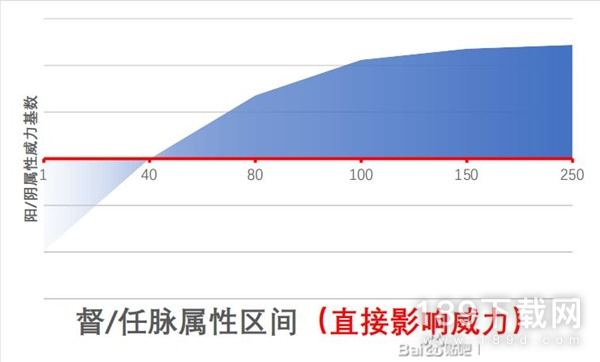 根据上图可以清楚的看到任督脉在80-100的提升度非常大,再让我们翻到最上面的那张《武功属性区间》图,从125开始到250的增幅微乎其微,完全不如多提升20的督脉。