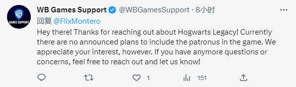 有玩家询问在开放世界冒险游戏《霍格沃茨之遗》中,是否包含古老防御咒语“守护神咒”,官方回复表示:“目前还没有公布将守护神咒加入游戏的计划。”