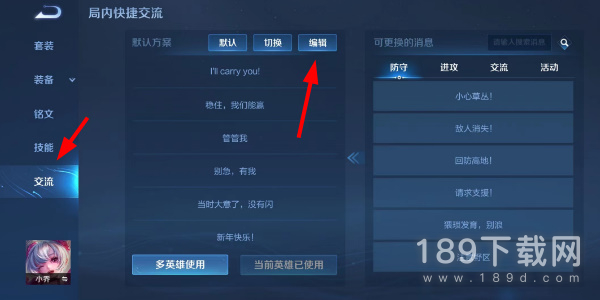 2、在局内快捷交流页面,点击上方的编辑,然后搜索快跑快跑语音。