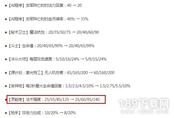 【灵能使】法术强度:25/55/85/125 → 25/60/95/140