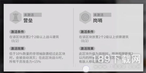 营垒激活方法:玩家需要在一个区域内建造2个2级以上的战斗建筑(其实二级也行),那么就会激活一个营垒。