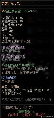 dnf阿拉德探险记第十季60级可以获得光环,光环为觉醒之光,属性可以见上图。