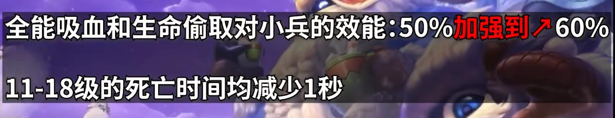 全能吸血和生命偷取对小兵的效能:50%加强到60%