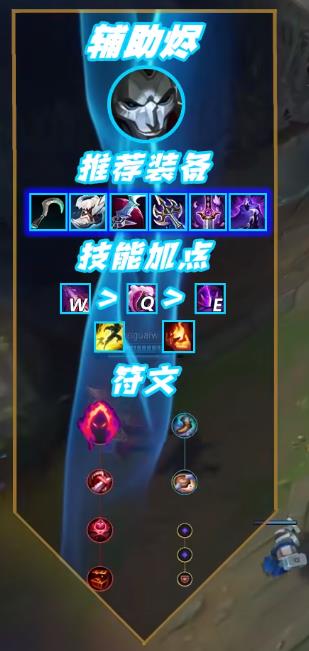 前期辅助烬可以通过曼舞手雷配合W定人消耗,在线上压制对手。中期凭借排眼刀打出视野优势。但和泽拉斯一样,对于敌方打野的包夹需要提前布置,否则很容易送双杀。
