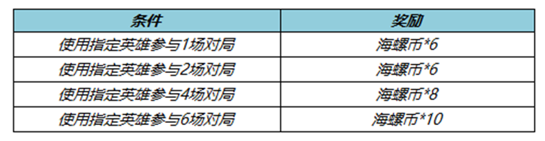 活动期间累计使用指定英雄参与对局即可海螺币等好礼!