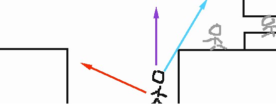 一直慢慢瞄着右边墙角的地方(蓝线),但是我玩了很多场都会发现大部分人是没有这个意识的。