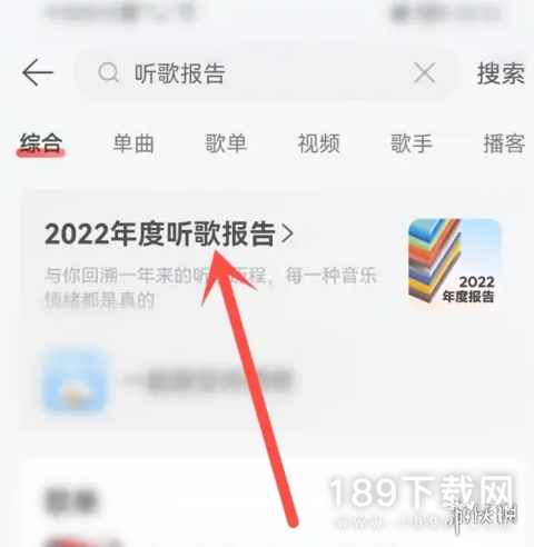 进入搜索页,点击上方“2022年度听歌报告”图标。