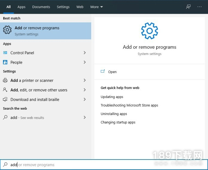 按下Windows键(或者点击工具列上的Windows图示),输入「新增或移除程序」,并按下Enter键。