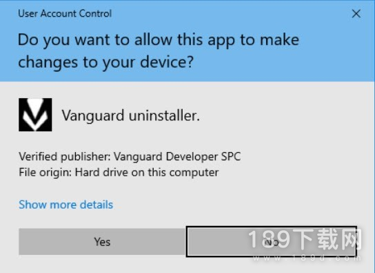 允许应用程序对你的装置做出更动,并再次确认解除安装Riot Vanguard软件。
