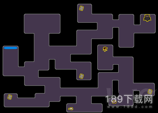【黑暗世界】第一个场景的地图可以参考下图,需要和全部道具互动之后才能进入下个场景,跟随游戏提示即可。遇到斧子时,如果之前没有拔出斧子,会再次询问是否拔出斧子。第二个场景找到书,可以存档。