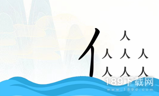 3、接着拖动跳下8个的最上面那个【人】字,到众人的左边,组成仙字,这样大家就能够渡海了(八仙过海,各显神通)