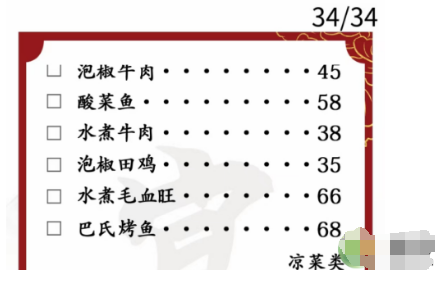 上面的内容就是小编为大家带来的全部内容了,在这里,小编衷心的希望汉字找茬王美食菜单改正34个错处怎么通关攻略内容能够对大家有所帮助,解决大家所遇到的问题,如果没能解决,那么小编深感抱歉。