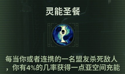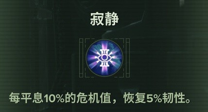 平息10%的危机恢复5%的韧性(非常泛用的一个天赋,因为灵能者的危机是灵能的关键资源所以只要你使用亚空间相关的攻击都需要积攒危机所以无论什么难度这个天赋都很适合)