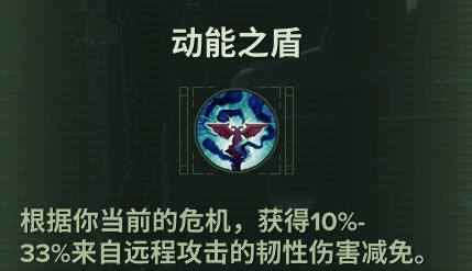 根据你的危机值提升韧性针对远程伤害的韧性减伤害10%~33%(如果你没有偏转器的立场剑建议使用这个天赋)