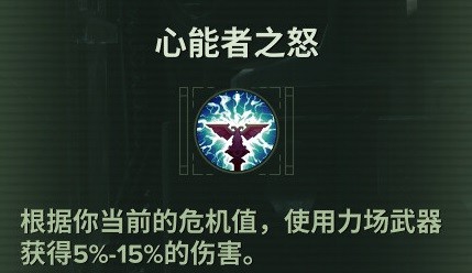 根据你当前的危机增加5%~15%的立场武器伤害(10级天赋的首选,因为灵能者几乎都是玩立场武器的,但是玩枪的就随意了)