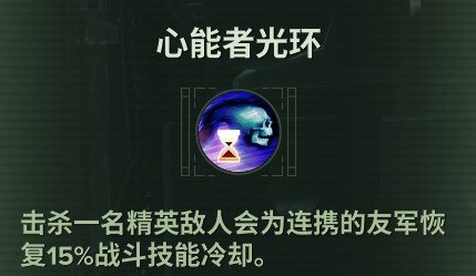 你和你连携的队友击杀敌人的时候有4%的概率获得一层被动(这个天赋看上去概率最高也就16%,但是我可以很明确的告诉你们这是灵能唯一一个不会自己动手捏头就可以叠满被动的天赋收益非常非常的高,因为你可以搭配5-1的天赋在获得被动的同时持续恢复30%的韧性而且不需要自己捏头一个个捏浪费你的输出效率)