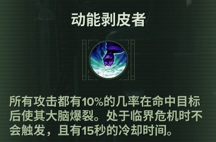 不处于100%危机的时候所有攻击都有10%的概率触发一次不增加危机值的捏头CD15S(非常好用的一个天赋能够让你15S就有一次概率性的爆发以及叠加被动让被动层数一直保持最高层的一种手段,高难度虽然经常捏在小怪身上但是时刻保持满层被动12%的增伤很关键)