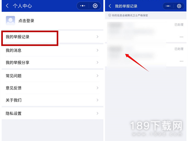 4、点击我的举报记录,界面就会显示举报处理进度了。