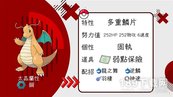 太晶化为钢系后,能抵抗本来冰系和妖精系的弱点,可以透过羽栖拉回血量,再次触发多重鳞片,从而进行多次的强化。