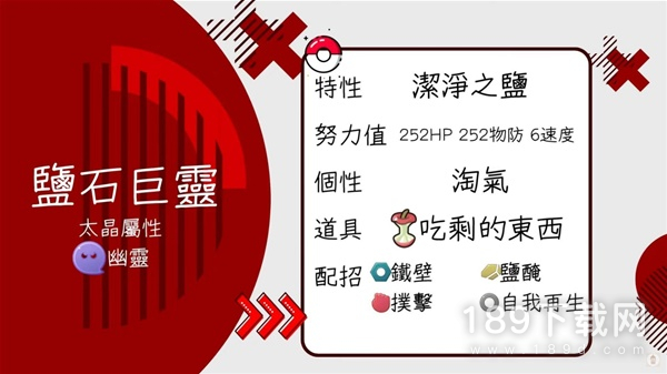 除了可以免疫本来的格斗系弱点,洁净之盐能把幽灵招式伤害减半,代表盐石巨灵能成为有两个免疫,却只有一个弱点的强大盾牌。