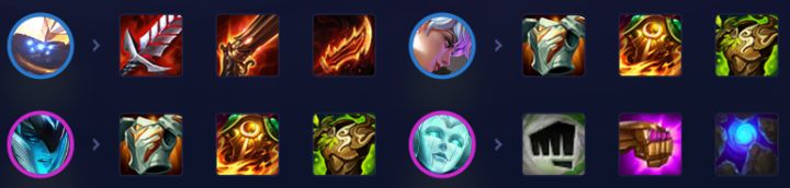 1.鬼索的狂暴之刃 2.饮血剑 3.日炎斗篷(瑟庄妮>锐雯) 4.蓝霸符 5.珠光护手 6.狂徒铠甲(瑟庄妮>锐雯) 7.石像鬼石板甲(瑟庄妮>锐雯) 8.疾射火炮