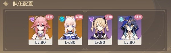 总结:角色自由搭配,携带水元素角色破盾即可。